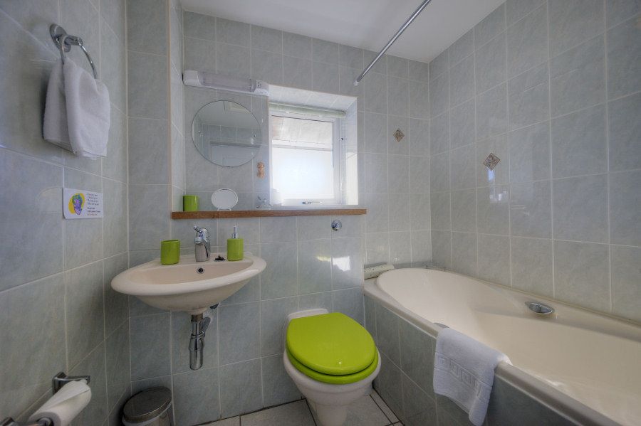 Bathroom 2 - Bath/shower, basin and W.C., electric towel heater and toilet paper