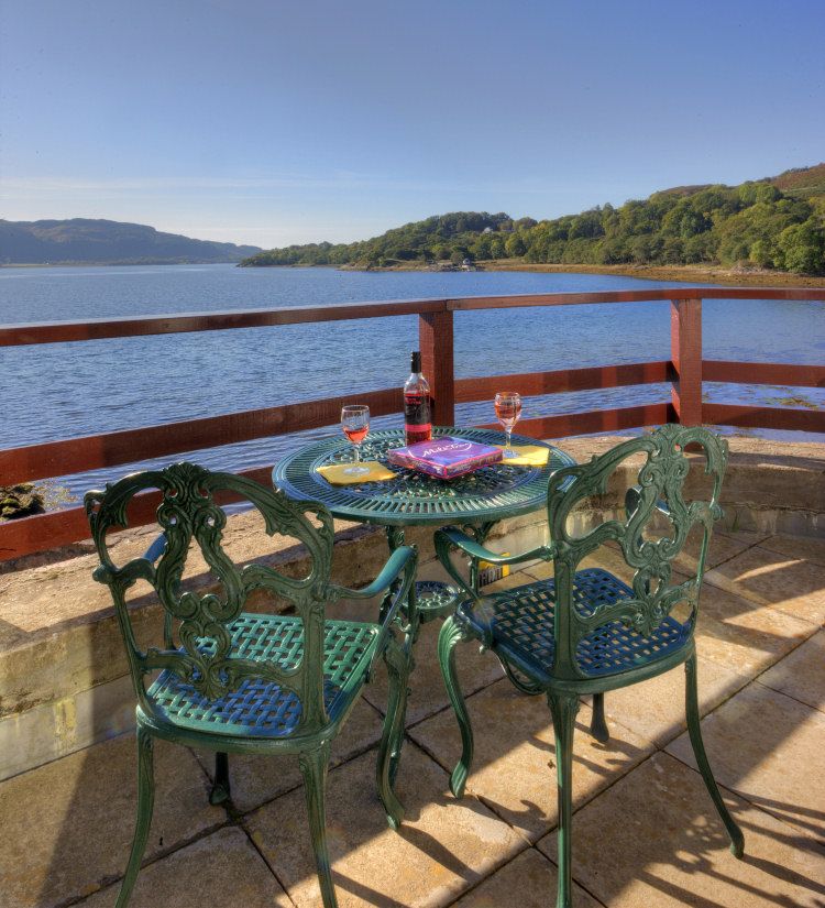 leading to the balcony overlooking the harbour and Loch Melfort.