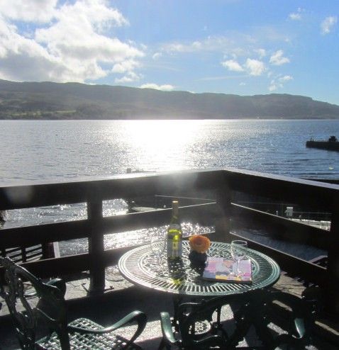 The French doors open to a large balcony with incredible views of Loch Melfort, one of the most beautiful Lochs on the West Coast of Scotland. There is outside furniture.