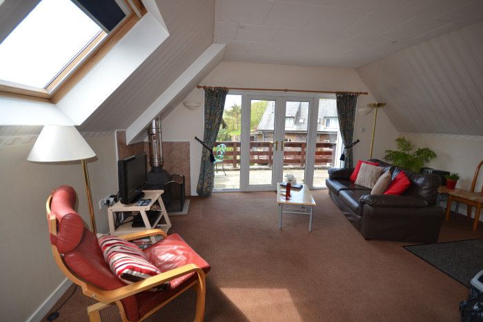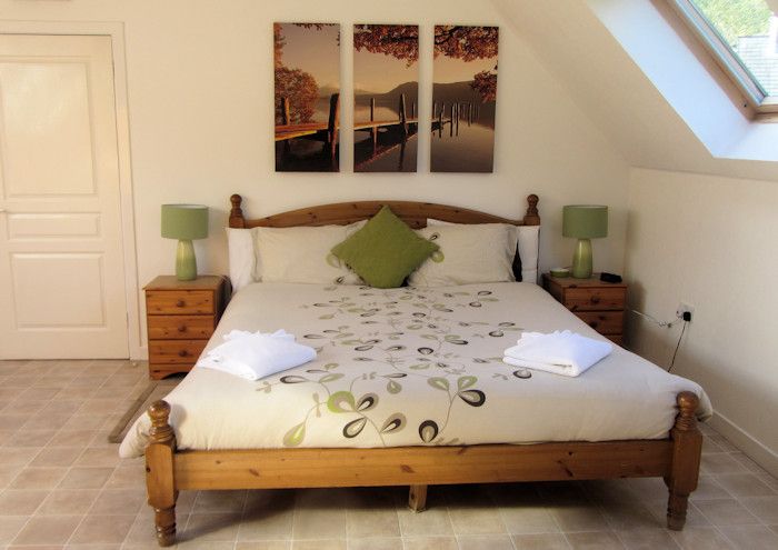 up a flight of stairs, parking, super long King size bed, 2 TV's, Wifi, log burning fire, under floor heating, gourmet kitchen, sauna, spa bath. large balcony with fantastic views of Loch Melfort.